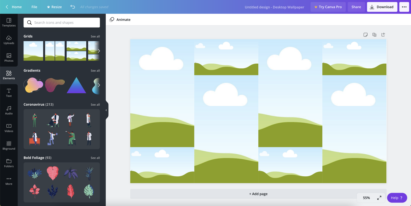 The grid above is my favorite for my vision boards. To find the grid options, click on “Elements” on the far left, then scroll down until you find “Grids” and click on “See all”. Then just choose your favorite.