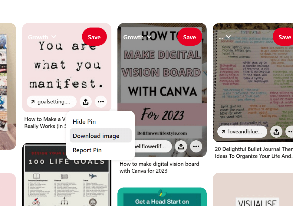 Once you created your board, start pinning all the images you want to be included in your vision board.